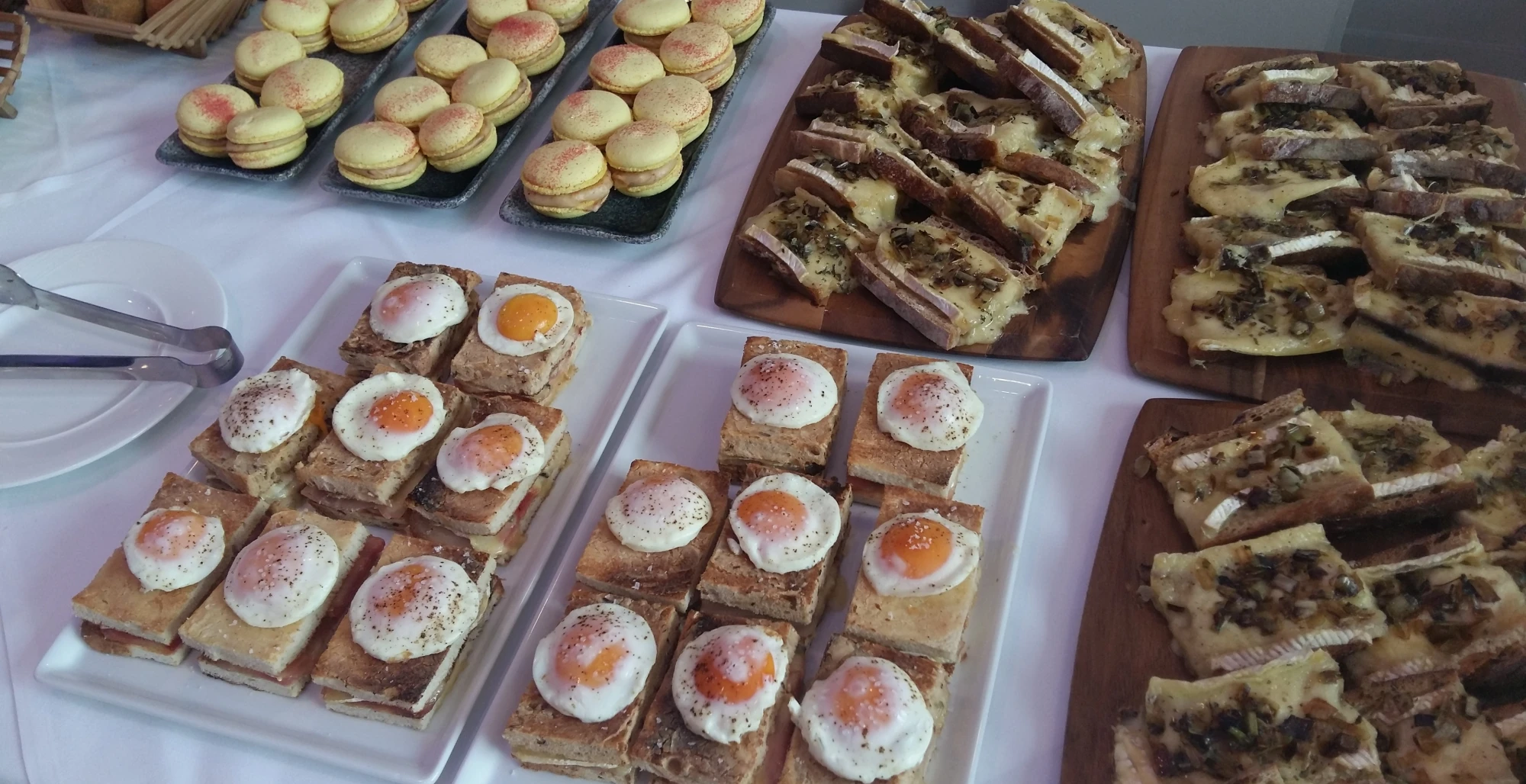 Macaron – cheddar & bacon; Arancini – mozzarella & button mushroom; Croque Madame– soft blue cheese & pickled beetroot; Danablue with hazelnuts & maple syrup; Cheese on toast– sourdough, NI brie, burnt leeks