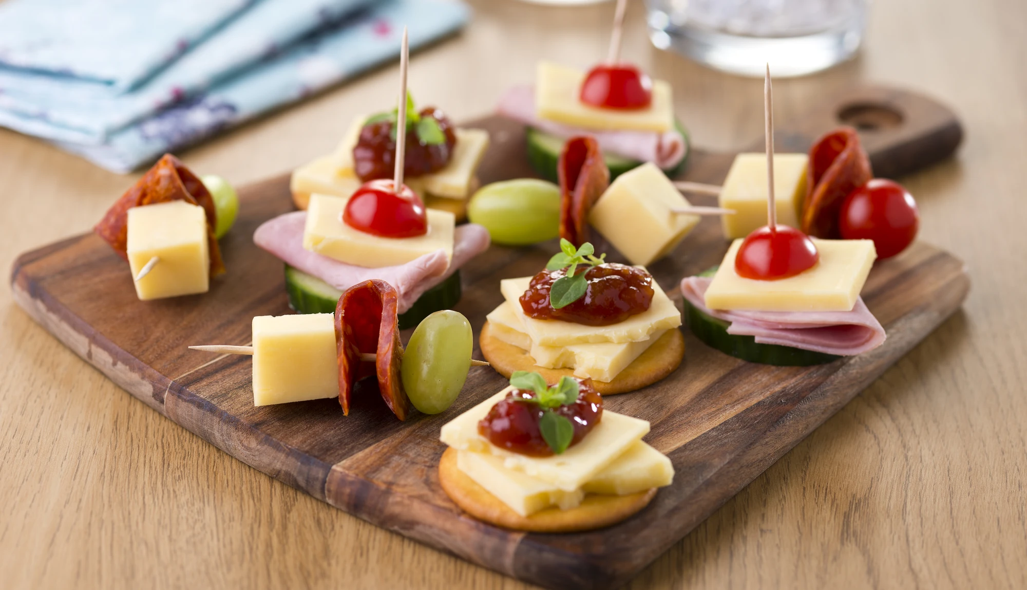 Thread a slice of chorizo onto a cocktail stick with cubes of cheddar and a grape or cherry tomato.