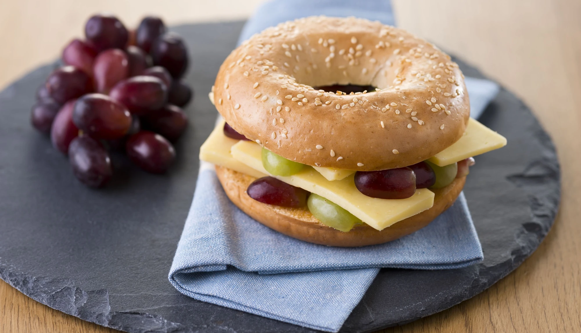 Fill with sliced cheddar and grapes, set the lid on top and serve.