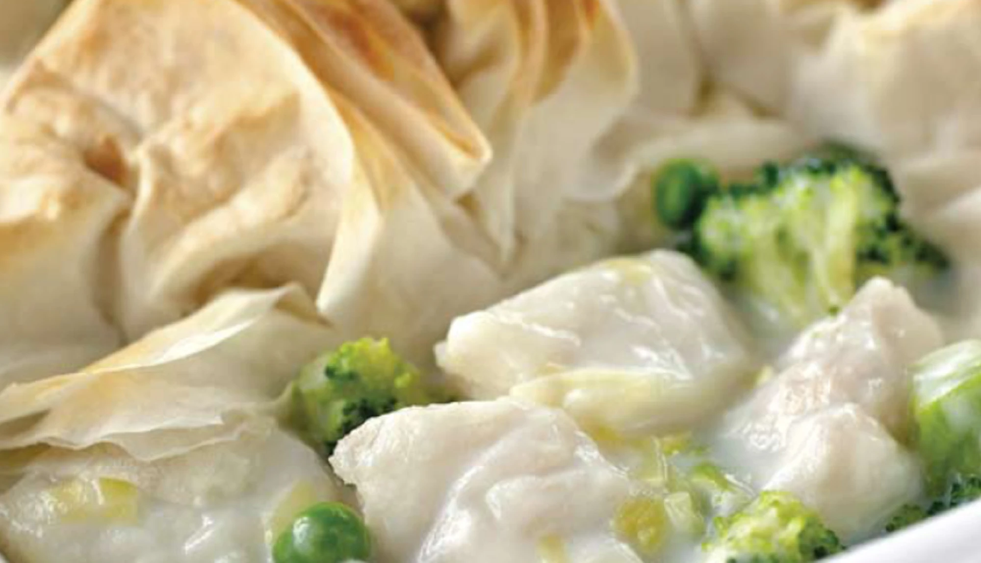Scrunch each length of pastry and place on top of fish mixture. Spray lightly with oil and bake at 180°C for 10–15 minutes, until pastry is golden and fish and vegetables are tender.