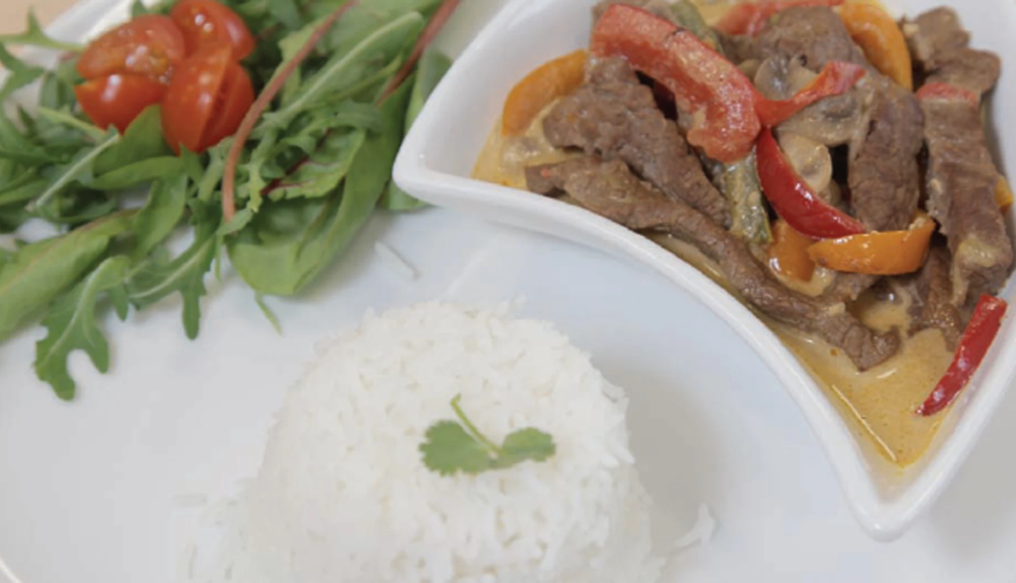 Then add the garlic, chilli powder, beef stock and cream. Reduce the temperature and simmer for about 20 minutes until the sauce has thickened and the beef is tender.
