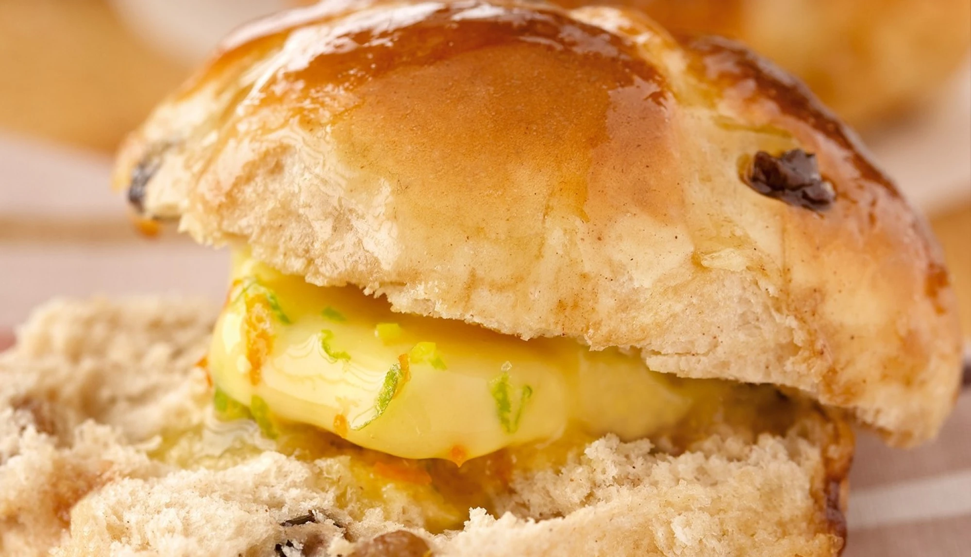 Cut a cross on top of each with a sharp knife. Bake at 220/ 200C fan for 20–25 minutes.