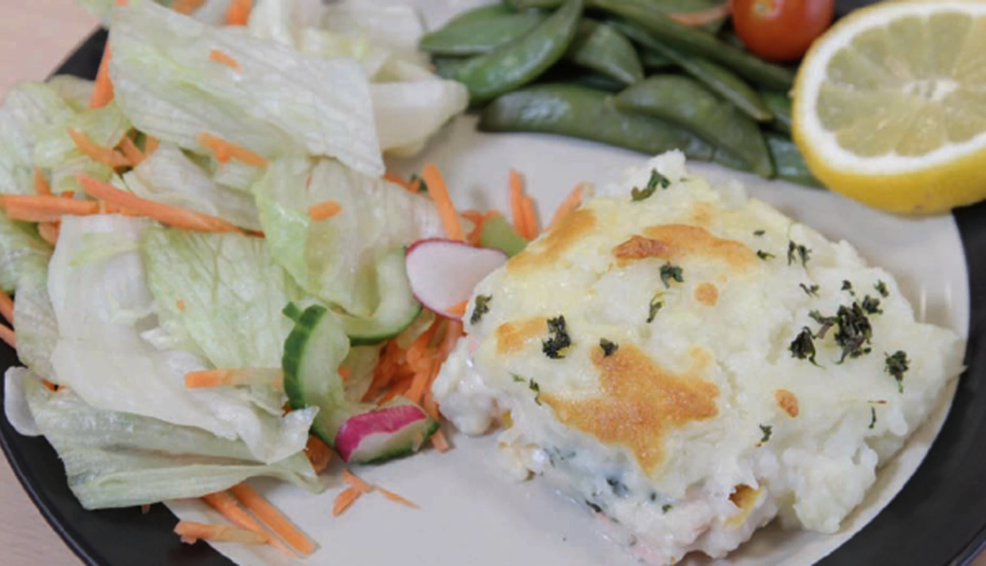 Preheat oven to 190ºC/ 170ºC fan/ Gas 5. Put the smoked haddock, salmon and cod in a large, wide–based pan. Add the bay leaf, peppercorns and the rest of the milk. Cover and heat very gently until the milk is just at simmering point, then simmer gently for 10 minutes or until the fish flakes easily.