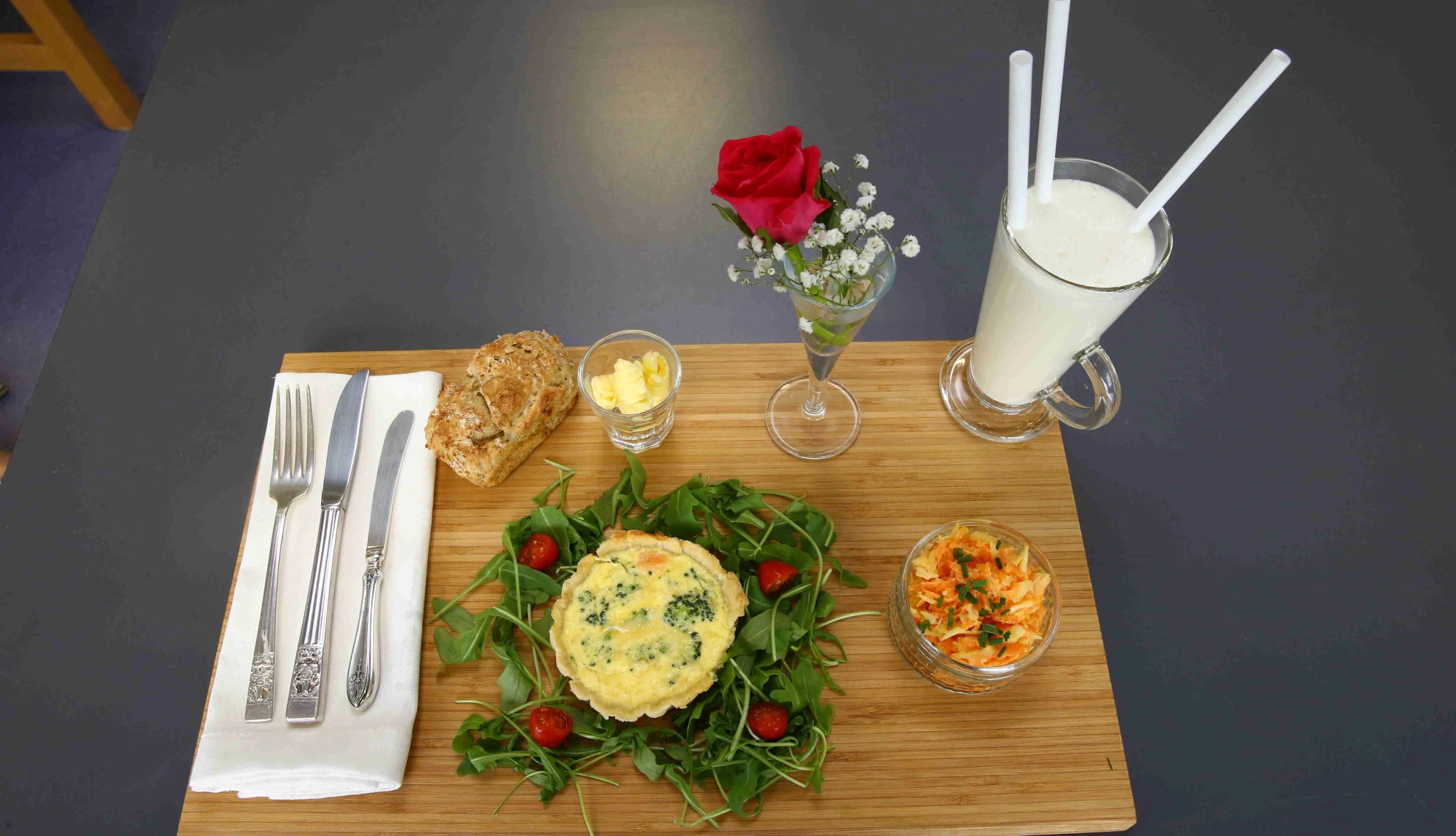 Mix all the ingredients for the filling together. Pour into the pastry cases, bake for 15 minutes until the quiche is set and risen. Leave to cool slightly and then place on a wire wrack.