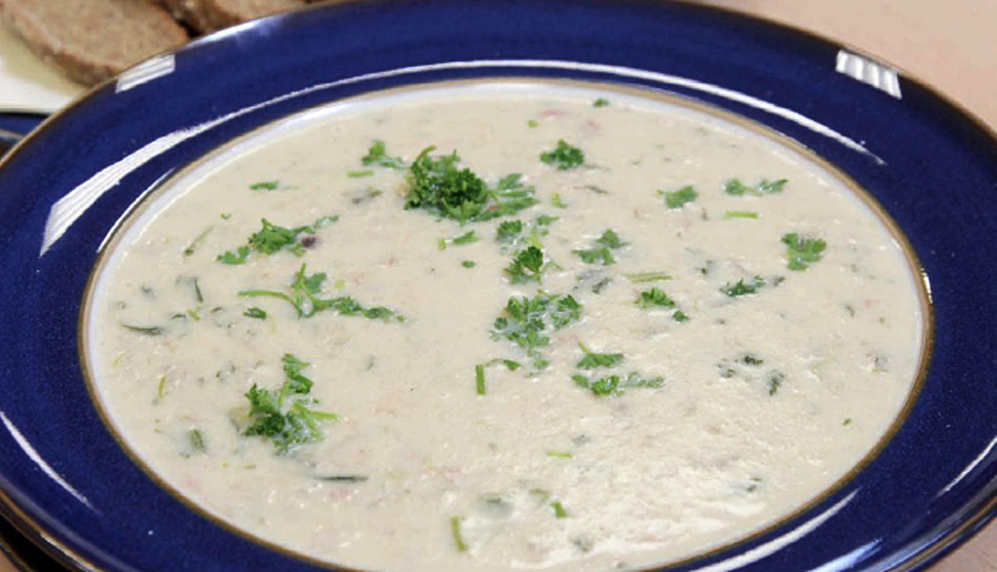 Serve with wheaten bread and butter curls.