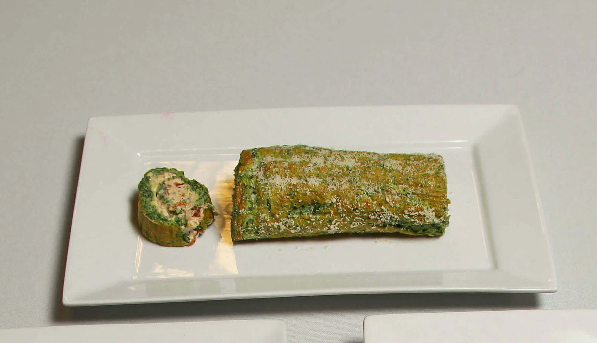 Line a Swiss roll tin with greaseproof paper, add the spinach mix into the tin and put in the oven. Bake for 12–15 minutes.